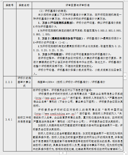 三、隨機確定評標(biāo)基準(zhǔn)價計算方法和所需參數(shù)